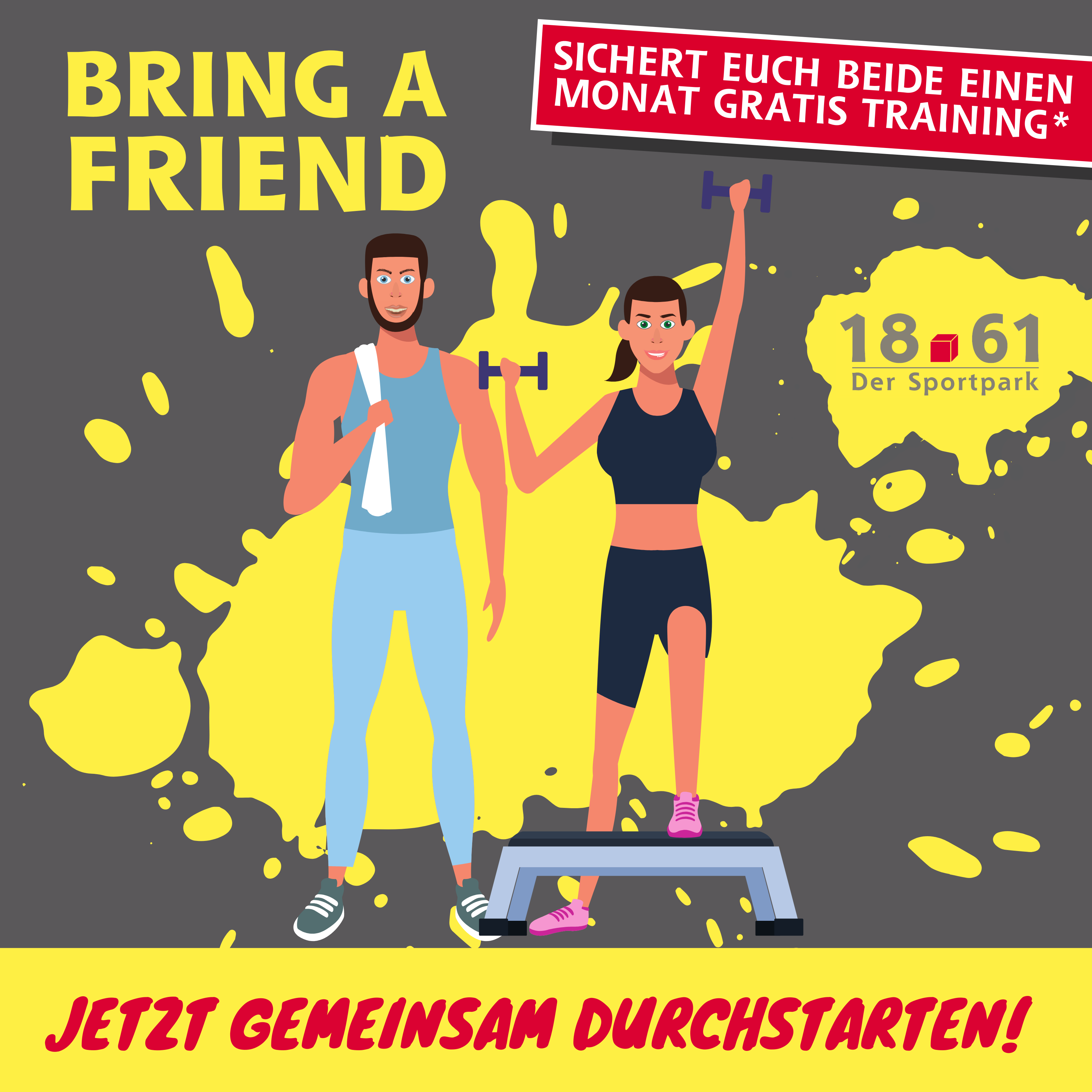 Ein motiviertes Training mit einem Freund ist immer schöner als alleine. Verabredest du dich mit deinem Freund zum Sport, ist außerdem die Wahrscheinlichkeit geringer, dass du dein Workout sausen lässt. Deshalb möchten wir dir die Möglichkeit geben, deinen Freund mitzubringen und dabei noch zu sparen: Bringst du einen Freund mit und schließt dieser bis zum 31.3.22 einen Vertrag bei uns ab, erhaltet ihr beide einen gratis Monat.
