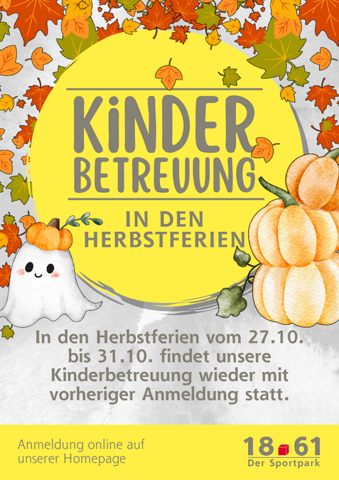 Damit wir eure Kleinsten auch in den Herbstferien wie gewohnt bestmöglich betreuen können, findet unsere Kinderbetreuung vom 27.10. bis zum 31.10. wieder mit vorheriger Anmeldung statt.