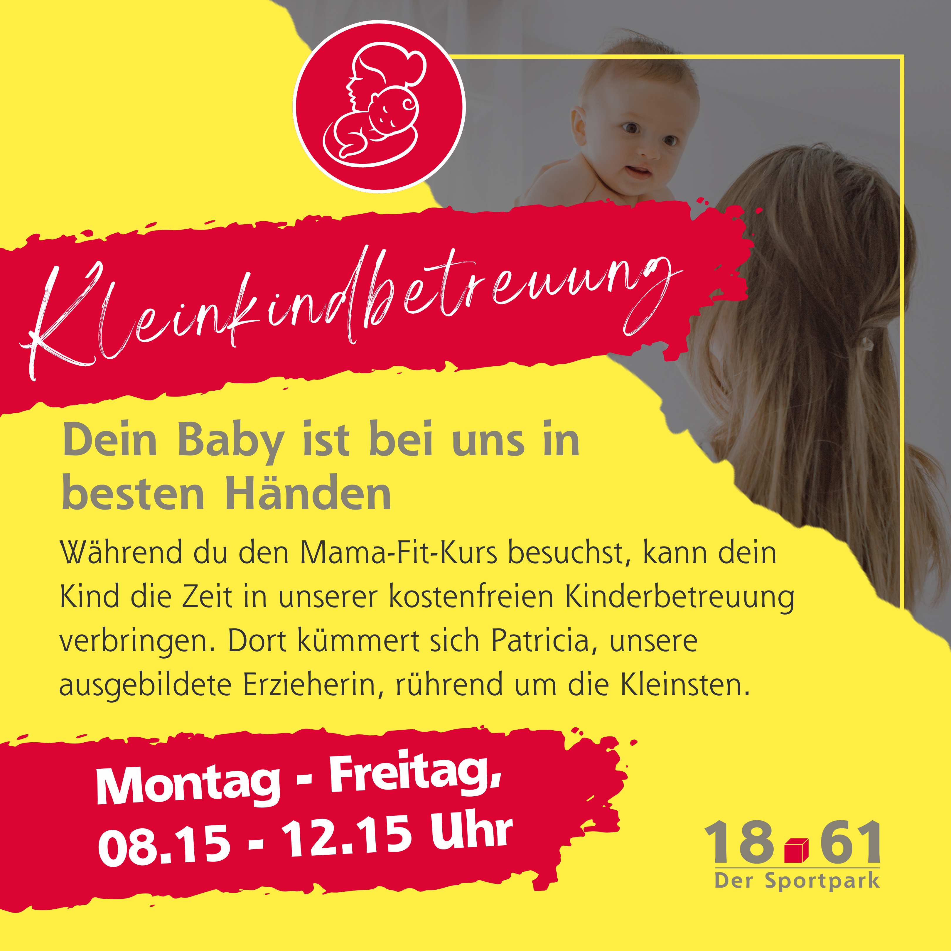 Während du im Mama-Fit-Kurs trainierst, kannst du dein Baby unbesorgt in unserer Kleinkindbetreuung abgeben. Dort kümmert sich Patricia, unsere ausgebildete Erzieherin, solange rührend um dein Kind.