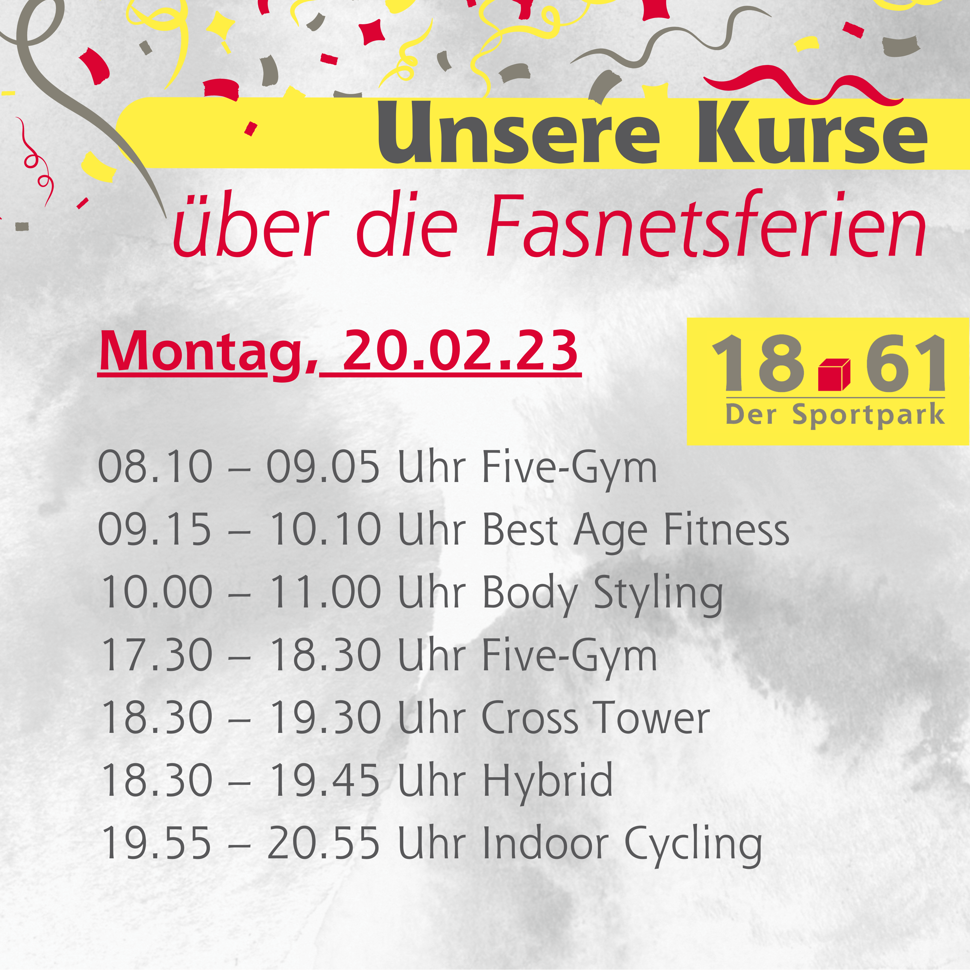 Am Fasnets-Dienstag finden alle Kurse wieder wie gewohnt statt.