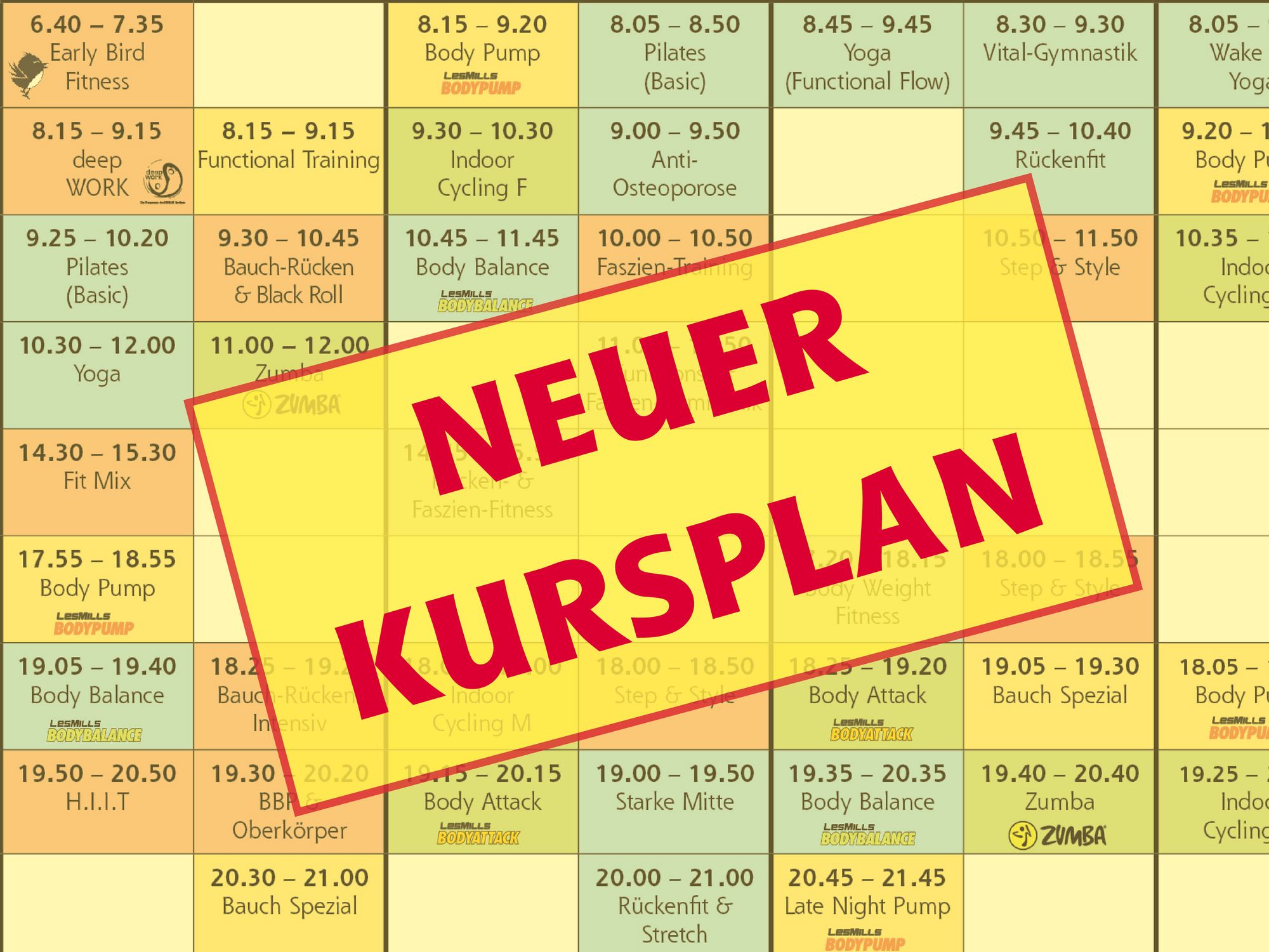 Achtung: Einige Kurse haben einen neuen Namen oder finden in einem anderen Raum statt. Also schaut schnell rein!