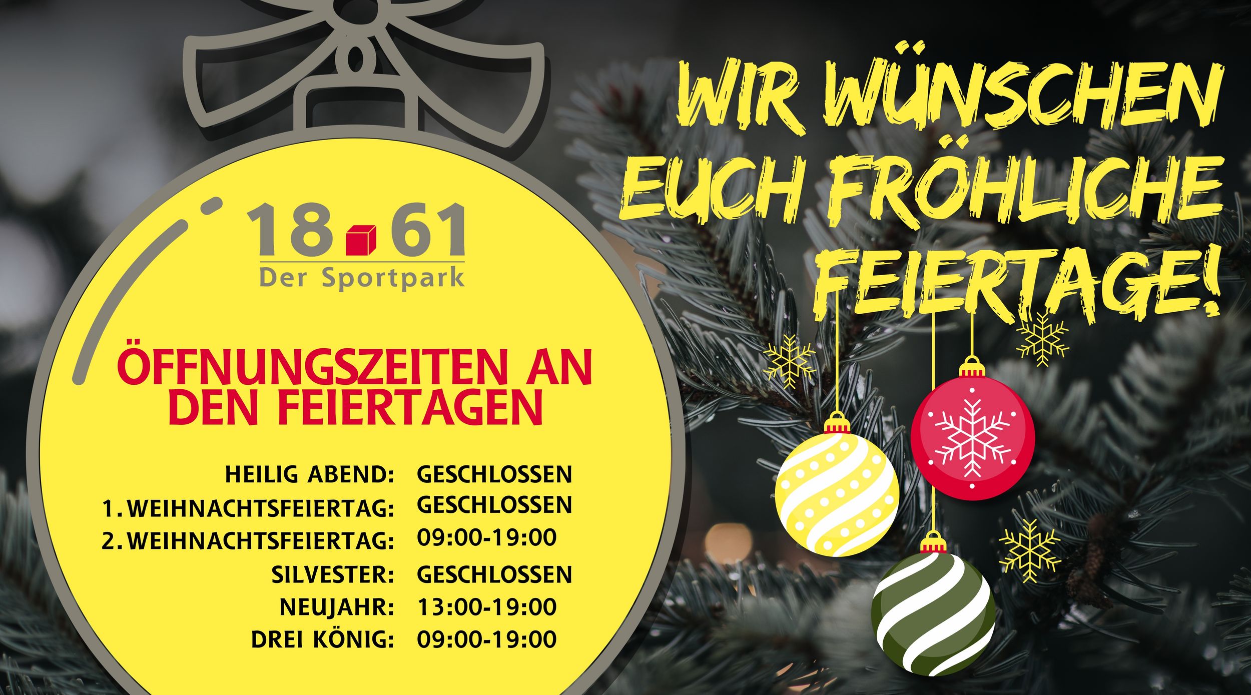 Wir wünschen euch frohe Feiertage und freuen uns auf euren Besuch!