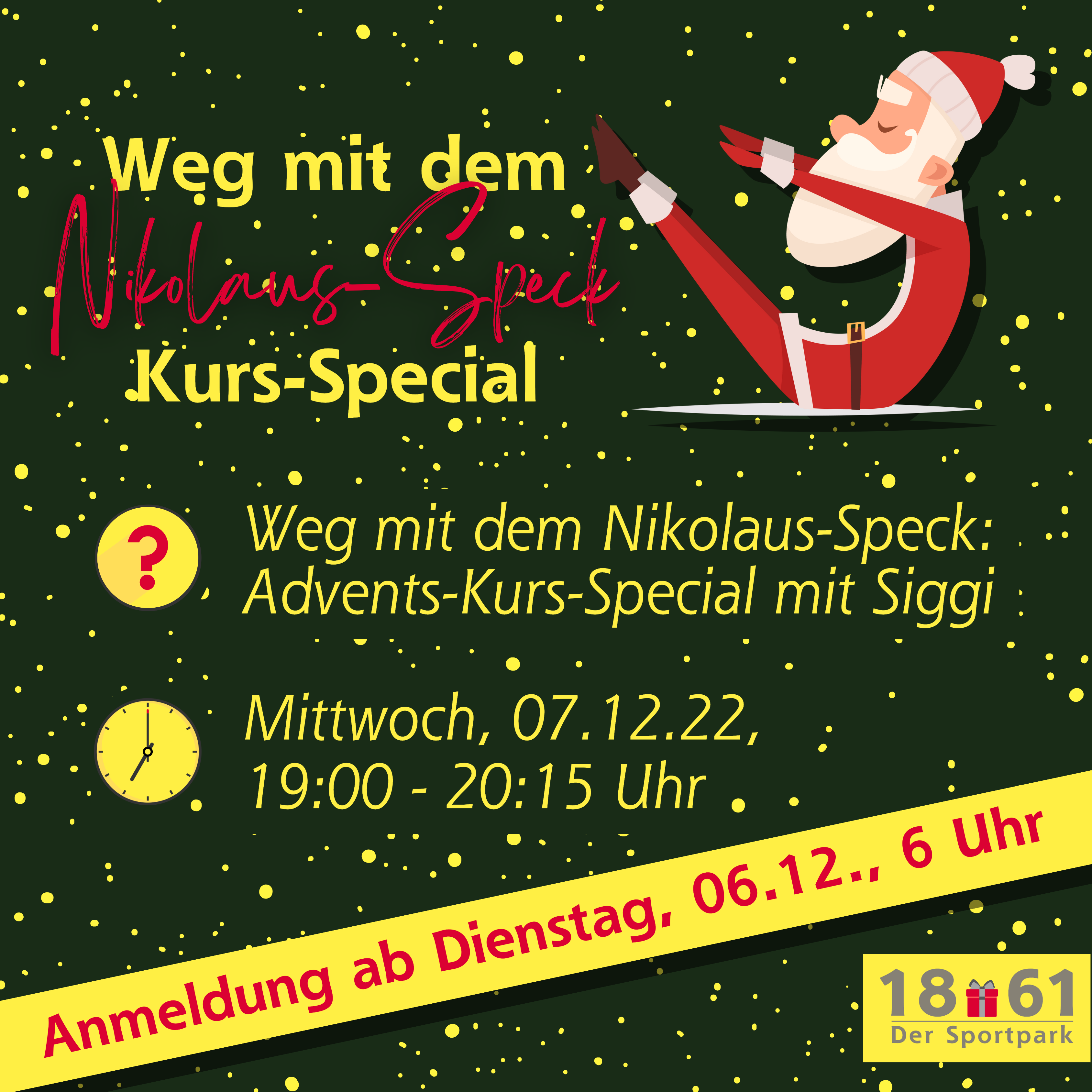 Am Mittwoch erwartet euch unser erstes Advents-Kurs-Special. Bei "Weg mit dem Nikolaus-Speck" mit Siggi könnt ihr den Nikolaus-Pfunden trotzen.