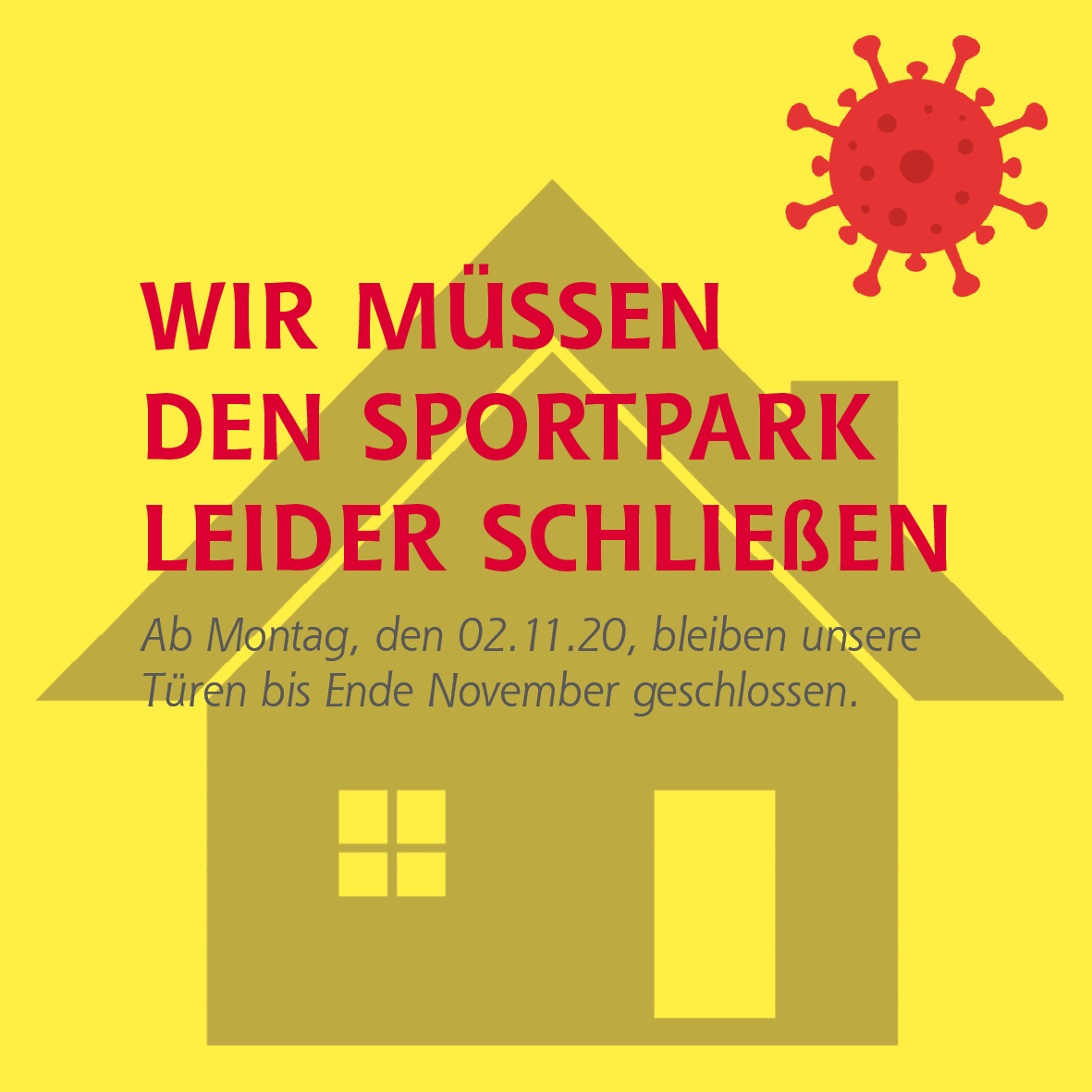 Trotz unseres verantwortungsvollen Umgangs hier im Sportpark und der Einhaltung aller Hygienestandards müssen wir ab Montag, 2.11.2020 bis voraussichtlich Ende November unsere Anlage schließen und den Sportbetrieb einstellen. Wir haben uns dazu entschlossen, im Monat November für die Dauer der Schließung keinen Mitgliedsbeitrag einzuziehen. Um Dir trotzdem die Möglichkeit zu bieten, fit zu bleiben, werden wir unsere gesamten Online-Kurse für Dich wieder auf Youtube zur Verfügung stellen. Da medizinische Behandlungen sowie Physiotherapie weiterhin möglich sein werden, prüfen wir noch, ob unsere Reha-Sportangebote erlaubt und umsetzbar sind. Aktuelle Informationen hierzu und zu allen anderen Neuigkeiten findest Du immer hier auf unserer Homepage. Telefonisch und per E-Mail kannst Du uns während es Lockdowns immer vormittags von 9-12 Uhr erreichen. Wir bedanken uns bei allen Sportpark-Mitgliedern für Euer bisher umsichtiges und verantwortungsvolles Handeln und hoffen, dass die Infektionszahlen sinken und ab Ende November wieder sportliche Aktivitäten möglich sind und wir uns bald wieder persönlich im Sportpark wiedersehen. Pass auf dich auf und bleib´ gesund! Dein Sportpark-Team